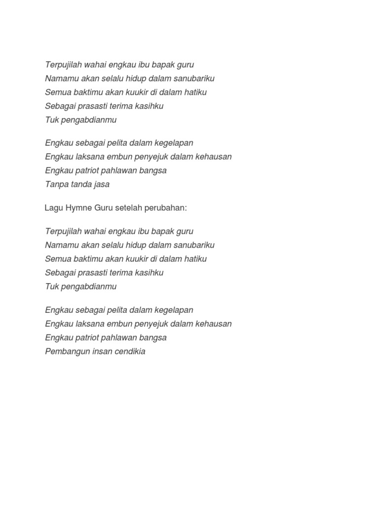 Lirik Lagu Hymne Guru Informationfasr - Download mp3 guru terpujilah gratis, ada 20 daftar lagu guru terpujilah yang bisa anda download.